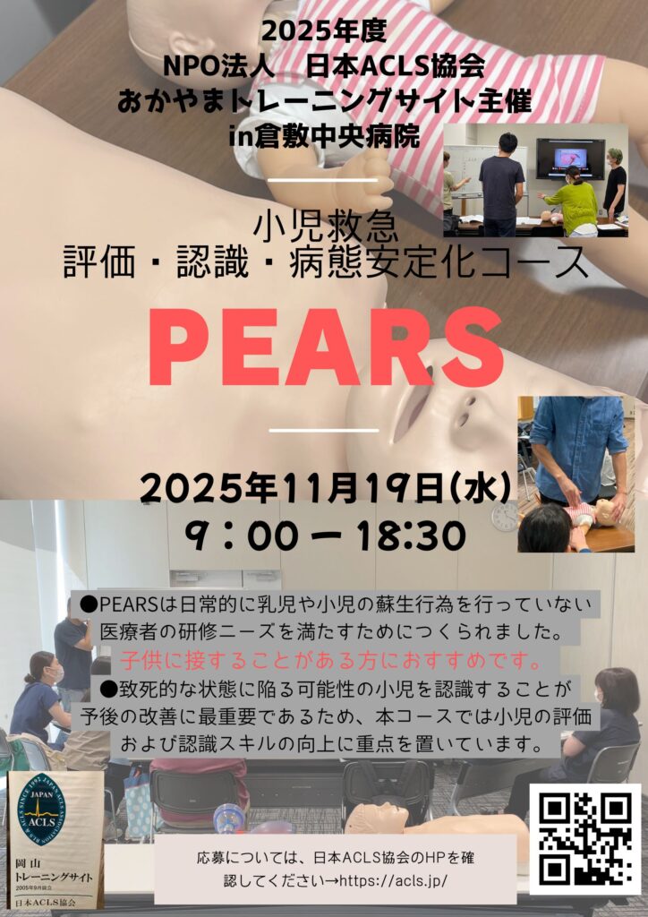 その一つに、AHAのインストラクターを育てていくこともしております。今回はPEARSコースの案内です。